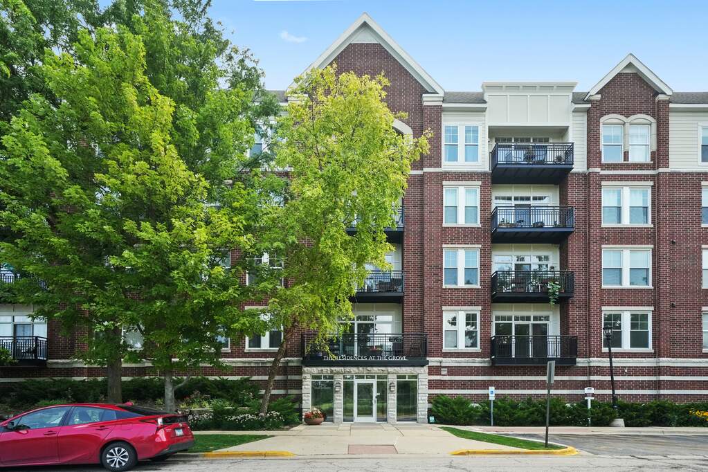 Welcome to The Residences at the Grove, where modern condo living meets a serene park-like setting. This bright and spacious 1 bed/1-bath offers an exceptional blend of convenience and comfort. Steps away from the Forest Park Blue Line station-ideal for anyone seeking a swift commute to downtown Chicago or O'Hare. Inside, an open-concept floor plan lets you entertain with ease. The kitchen features a breakfast bar that flows into the living area. Ample windows invite natural light, creating a welcoming atmosphere in every corner. The generously sized bedroom provides abundant closet space, while the bathroom boasts modern fixtures. In-unit laundry adds yet another level of convenience. This secure elevator building offers an array of premium amenities including a recently renovated fitness center, perfect for any workout routine. Host gatherings in the community room, complete with a full kitchen and TVs. One garage parking space included. Explore the neighborhood to discover an abundance of dining, shopping, and entertainment options along Madison Street. Grocery markets are nearby too. Don't miss the chance to make this beautiful condo and community your own.