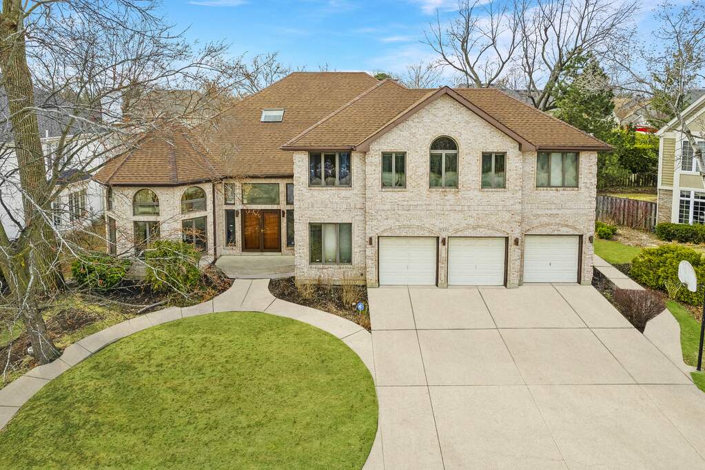 Welcome to 2410 Halina Drive - an impressive, all-brick custom estate nestled on a peaceful cul-de-sac in the heart of Glenview. With 7 bedrooms, 5.5 bathrooms, and a 3-car garage, this home offers the perfect blend of grandeur, warmth, and flexibility for multi-generational living or elegant entertaining. Step through the front doors and into a dramatic two-story foyer featuring polished marble tile, a breathtaking crystal chandelier, and a handcrafted all-oak curved staircase that makes a lasting first impression. Throughout the home, you'll find oak doors and trim, as well as Anderson windows that enhance both beauty and energy efficiency. The main level offers an expansive formal living room with vaulted ceilings, arched windows, and a stunning marble fireplace. The cozy family room, just off the kitchen, includes its own fireplace and opens into a unique vaulted sitting area with skylights, arched windows, and a spiral staircase leading to a lofted retreat - perfect for reading, creating, or relaxing. Entertain effortlessly in the elegant formal dining room with oversized windows and chandelier, or cook with ease in the chef-inspired kitchen, complete with a built-in cooktop, large island, generous cabinetry, and a bright breakfast nook surrounded by panoramic windows. A main-level bedroom with a full bathroom is ideal for guests or in-law living, while a convenient powder room adds function to the floor plan. Upstairs, discover five spacious bedrooms, including a luxurious primary suite with vaulted ceilings, its own fireplace, a double vanity, deep jacuzzi tub, separate shower, and walk-in closet. Two additional full baths - one shared, one Jack-and-Jill - serve the remaining bedrooms. The fully finished basement is an entertainer's dream: a large custom wet bar, second kitchen, lounge space with its own fireplace, an additional bedroom, and a full bathroom with a steam shower for spa-like relaxation. Whether hosting guests or seeking a quiet retreat, this level has it all. Enjoy four fireplaces throughout the home, two brand-new HVAC units (installed 9 and 18 months ago), and excellent curb appeal with a massive rear deck, and mature landscaping, perfect for summer nights. Located just minutes from I-294, O'Hare Airport (15 min), Chicago Executive Airport (10 min), and local shopping and dining, this home also offers access to nationally recognized, award-winning schools - elementary, middle, and high school within walking distance. Total square footage, including the finished basement, is 6,991 sq ft.