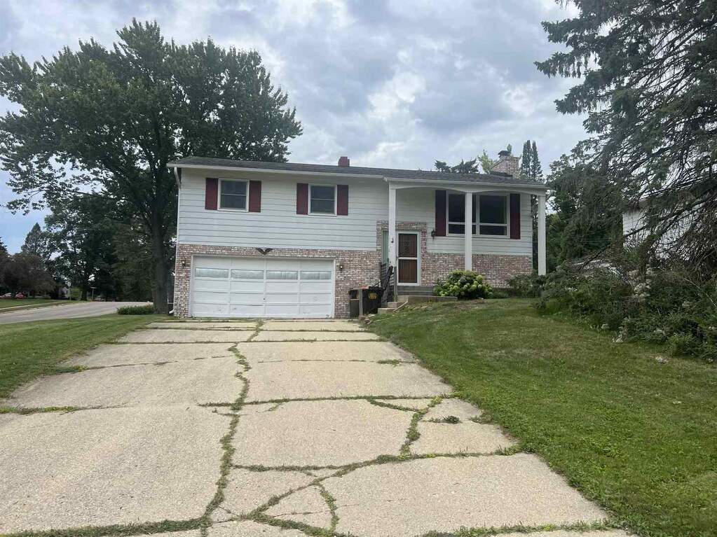 This Bi- level with 3 bedrooms home sits on a corner lot. Living room, kitchen and dining area leading to a deck. 1.5 bathrooms. Family room in the Lower level with a fireplace. Walk out basement on to a paved brick patio. Laundry room in lower level. Over sized 2 stall garage. New fenced in yard. Shed stays. HVAC 2019 Water Heater 2010. Roof 2010 Extra insulation. Sold As Is.