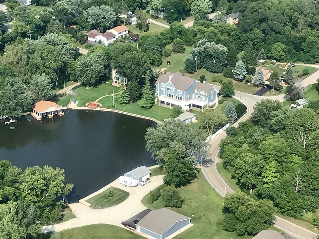 Experience the ultimate in lakefront living in one of the Chain O'Lakes' most coveted and tranquil settings-a secluded bay offering both serenity and effortless access to the open waters. This truly one-of-a-kind legacy estate spans more than 14 acres with an extraordinary 2,500 feet of pristine waterfront, creating a rare blend of privacy, scale, and natural beauty. The peaceful bay provides a protected environment ideal for swimming, kayaking, paddleboarding, birdwatching and year-round fishing, while still allowing quick passage to the main lakes. Custom built by the current owners with uncompromising quality and attention to detail, the residence offers approximately 8,400 square feet of refined living space, featuring 5 bedrooms, 6 full and 3 half baths, and an impressive collection of luxury amenities. A dramatic, sun-filled Great Room welcomes you with soaring ceilings, a striking two-story fireplace, and breathtaking sunset and bay views. The flowing, open-concept design continues into the gourmet kitchen and dining area, with access to a full-length deck-perfect for grilling, al fresco dining, and evening gatherings under the stars. The chef's kitchen is appointed with a Wolf cooktop and double ovens, separate Sub-Zero refrigerator and freezer, honed granite countertops, a large center island, built-in hutch, and a spacious walk-in pantry. The main-level primary suite is a private retreat, featuring a stone fireplace, stunning water views, a spa-inspired bath with heated floors, an expansive walk-in closet, and a dedicated washer and dryer. Additional main-level highlights include a private office with built-in desks and storage, an expansive mudroom, elevator access to all three levels, and entry to a heated three-car garage with TV. Designed for both entertaining and recreation, the walk-out lower level offers an expansive recreation room, media room, second kitchen, a steam room, an indoor pool and spa with outdoor access to a large paver patio, a safe/exercise room and 1.1 bathrooms. Another oversized heated lower-level garage provides convenient on-site boat storage. For the boating enthusiast, the property delivers a private marina experience including a conditioned 32' x 14' boathouse for year-round storage; 3 covered permanent piers with lifts, plus an additional lift alongside; a private concrete boat ramp and adjacent guest pier for safe docking and easy launching. For collectors and hobbyists, the estate features: a 1,400 SF heated and cooled workshop attached to the boathouse; an additional heated and cooled detached garage/shop; and a 40' x 60' barn with heated workshop and generous storage. The Chain O'Lakes comprises 15 interconnected lakes and 45 miles of waterways across approximately 7,100 acres, offering an ever-changing lifestyle of recreation and exploration --- cruise the Chain's larger lakes, visit waterfront restaurants, or retreat to quieter waters for fishing, waterskiing, and wakeboarding. This rare waterfront estate seamlessly blends luxury, recreation, and privacy, all just minutes from state parks, shopping, major highways, and approximately 45 minutes from O'Hare and Mitchell International Airports. Enjoy an easy commute directly to Chicago via commuter trains from Antioch or Fox Lake. A once-in-a-lifetime opportunity to own one of the Chain's most exceptional properties.