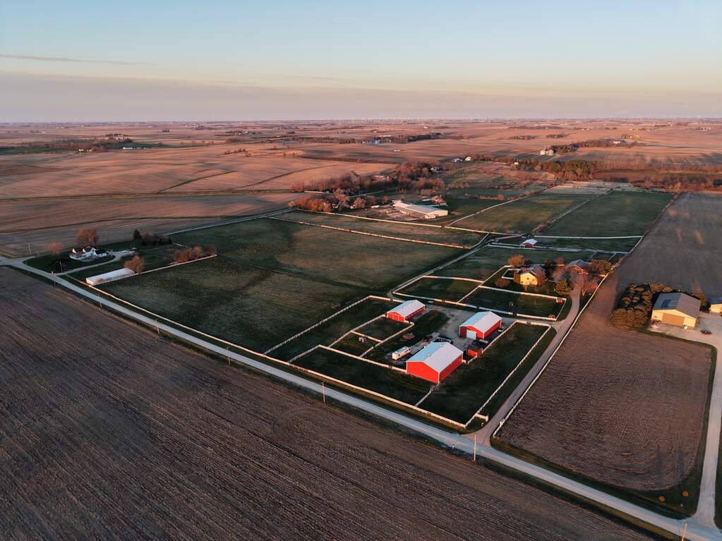 Discover your opportunity with this rare gem: a stunning 5 bedroom, 3.5 bathroom custom walk-out ranch home perched atop the highest elevation in DeKalb County. Set on 50.04 +/- picturesque acres of gently rolling countryside, this fully fenced and gated property offers privacy, breathtaking views, and exceptional functionality for horses, farming, or country living. The 3,500 square foot home features a spacious gourmet kitchen with plenty of countertop space and abundant wood cabinets for plenty of storage, including a large island. You will enjoy a first-floor laundry room, a luxurious primary suite with walk-in closet, an open floor plan perfect for everyday living and entertaining, and a spacious attached 2-car garage. The massive deck off the family room and kitchen provides the ideal spot for morning coffee or evening relaxation, overlooking sweeping southern views across the estate. The fully finished walk-out basement includes a huge 19'x27' rec room which seamlessly opens to a 15'x19' TV/movie space-ideal for family gatherings or quiet nights in. Step outside to a large patio that leads to a fenced backyard oasis with landscaped planting beds and productive peach, apple, and pear trees that yielded fresh fruit last season. The 50.04 +/- acres include easily accessible, gently rolling tillable (37 acres +/-) currently in hay and pasture ground (11 acres +/-) with a strong average Productivity Index (PI) of 133.3-prime DeKalb County soil known for productivity. Convenient Location & Commuter Access Just 2 miles from I-88 (Ronald Reagan Memorial Tollway) for quick access east to Chicago or west toward the Quad Cities. Approximately 10 minutes to the Elburn Metra station (Union Pacific West Line) for daily commuter trains to Chicago's Ogilvie Transportation Center. Premier Equestrian & Farm Infrastructure This turn-key horse property includes two well-built horse barns with a combined 23 stalls: -Stable #1: 32' x 64' with 11 stalls and a hay loft near the house -Stable #2: 35' x 70' with 12 stalls across from machine shed and hay barn Both barns feature concrete floors with 3/4" rubber cow mats in every stall, running water, and electrical outlets. Additional outbuildings include: -Hay Barn: 50' x 72' with raised platforms for dry, elevated storage -Machine Shed: 40' x 70' heated machine shed with concrete floor, water, drains, and drive-through doors on both ends -Shedrow Barn: 33' x 45' located SW of the house -Large Storage Sheds: both with concrete floors. Shed 1 (12'x18') located north of drive across from house and Shed 2 (16'x16') located between the machine shed and the hay barn -Coops for chickens, turkeys, or geese attached to Barn #1 and southwest by the shedrow barn Whether you're seeking a private family retreat, a professional equestrian facility, or a productive hobby farm, this one-of-a-kind property delivers it all. A rare combination of luxury living, panoramic views, and top-tier agricultural infrastructure in a convenient DeKalb location. Property Features Equestrian Estate on the highest point in DeKalb County 3,500 sq. ft. - 5 bed, 3.5 bath custom walk-out ranch Amazing views from multiple vantage points 2 Stables with 23 total stalls- concrete floors and 3/4" cow mats, water, & electric Hay Barn with elevated storage built in Large drive-through machine shed with heat, water, concrete floor Shedrow barn with water 2 Large storage sheds w/concrete floors 2 chicken coops Easy access high-quality land with PI avg 133.3 Great location with transportation and activities nearby Chicago Loop: ~60-65 miles (~1 hour drive) O'Hare International Airport (ORD): ~55-62 miles (~1 hour 15 minutes) Midway International Airport (MDW): ~60-65 miles (~1 hour 15 minutes) Nearby attractions include Northern Illinois University (NIU) campus, DeKalb Park District facilities, local dining/shopping in downtown DeKalb and Sycamore, plus multiple nearby golf courses, fo