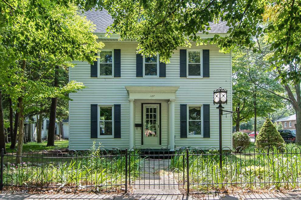 If you have an appreciation for historic homes, you are in for a treat! This turn of the 20th Century home, in the Historic District of Plainwell, has been very well maintained by its current owner. Located right across from Hicks Park, walking distance from the Library and the Post Office, a block from Main Street. Zoned both, commercial and residential. Access to all city Parks without crossing an intersection. The home boasts low-maintenance vinyl, a beautiful Antique-style gate light, Antique-style Street light, perennials flowers, and property is surrounded by an Antique iron fence. Hardwood throughout the first floor, ceramic tile in both bathrooms, hardwoods on hallway upstairs--only the bedrooms are carpeted. There's more...