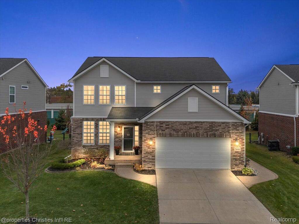 Welcome Home to 7694 Gannon! Discover this stunning, thoughtfully designed 2017-built home, nestled in a highly sought-after, family-friendly neighborhood in Shelby Township. Offering 4 bedrooms, 2.5 bathrooms, an attached garage, and a beautifully finished basement, this property blends modern elegance with cozy charm, creating the perfect haven for families of all sizes. As you step inside, you'll be greeted by tall ceilings and an open, airy floor plan designed for both style and functionality. The main level features a versatile flex space or formal living room at the entry, flowing into an inviting open-concept family room, dining area, and kitchen. A cozy hearth fireplace anchors the space, while expansive windows flood it with natural light. The kitchen is a chef's dream, boasting a large island, sleek stone countertops, upgraded appliances, and a walk-in pantry. Adjacent to the kitchen, you'll find a convenient mudroom and first-floor laundry room, making daily routines a breeze. Upstairs, the second floor offers a spacious loft area, perfect for use as an additional living room, play area, or home office. The primary suite is a true retreat, featuring a spa-like ensuite with a soaking tub, walk-in shower, and a generous walk-in closet. Three additional bedrooms offer plenty of space for family or guests. The finished basement is a showstopper, featuring a built-in bar, room for a pool table, and ample space for recreation, a home gym, or a media center-perfect for entertaining or unwinding. Outside, the backyard is a private oasis, complete with a patio and a large covered gazebo, ideal for relaxing or hosting gatherings. The fully fenced yard ensures both privacy and safety for pets and children. This home is situated in a welcoming community with Utica Schools, access to parks, trails, local shopping, and dining. The neighborhood HOA fosters connection with annual picnics and planned events, making it an excellent place to call home. Start 2025 in the home of your dreams!