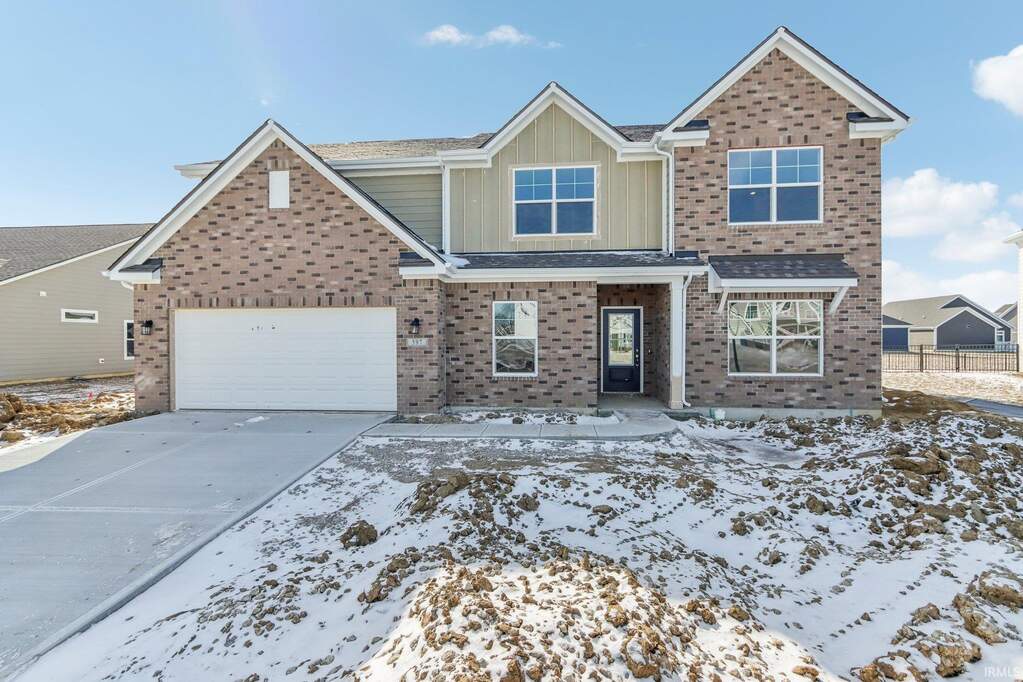 Welcome to this impressive new construction home offering 4 bedrooms and 2.5 baths in West Lafayette! This Monroe floor plan features a brick facade creating a bold, yet timeless exterior, enhanced by beautiful Board & Batten vertical siding that adds character and curb appeal. Through the larger foyer, discover the heart of the home, featuring a cozy gas fireplace with a stone surround in the Great Room, perfect for cozy gatherings. The gourmet kitchen boasts sleek stainless steel appliances, quartz countertops, 36" upper cabinetry, and a vent hood that vents directly to the exterior, ideal for culinary enthusiasts. Enjoy your meals in the designated dining room or set up a quiet workspace in the den. Upstairs, the loft provides versatile space for relaxation, recreation, or extra storage. The primary suite is a true retreat with a single-step ceiling for added elegance, and the ensuite bath features a separate garden tub and a luxurious 48" shower. Vinyl plank flooring flows throughout the common areas, offering a stylish and easy-to-maintain finish. With a covered back patio, you can enjoy outdoor living year-round. This home offers a seamless blend of style and functionality. Don't miss the opportunity to make it yours!