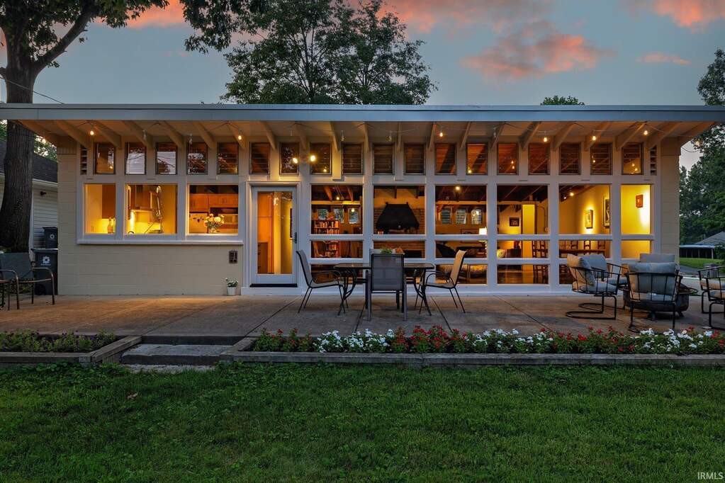 Frank Lloyd Wright-Inspired Usonian Home Located just a 15-minute walk from the east side of Indiana University's campus, this stunning Frank Lloyd Wright-inspired Usonian home offers a rare opportunity to own a true architectural gem. Designed with Wright's signature philosophy of blending modern form with natural function, this one-of-a-kind property combines artistry, comfort, and smart design. The home's entire back wall is made of glass, creating a seamless connection between the interior living space and the beautifully landscaped backyard. A phone-controlled irrigation system makes maintaining the grounds effortless, while the surrounding greenery provides both beauty and privacy. Inside, the open-concept floor plan is anchored by a raised fireplace-an eye-catching focal point that adds warmth and charm to the living area. Natural light pours in through an astonishing 75 windows, creating a serene, airy atmosphere throughout the home. Heated tile floors offer a sense of luxury, while the bathroom features a spa-like steam and rain shower, as well as a mirror that automatically de-fogs. A hidden door cleverly conceals the washer and dryer, adding to the home's clean and minimalist aesthetic. The newly renovated kitchen blends sleek modern finishes with practical functionality, perfect for everyday living and entertaining. In 2019, a new roof with foam insulation was installed, increasing the home's energy efficiency and long-term durability. With a proven track record as a short-term rental, this property would make a beautiful place to live but also a lucrative investment opportunity. Whether you're looking for an architecturally significant home to make your own or a high-performing rental in a desirable location, 2412 E 4th Street is a unique and extraordinary find on Bloomington's East Side.