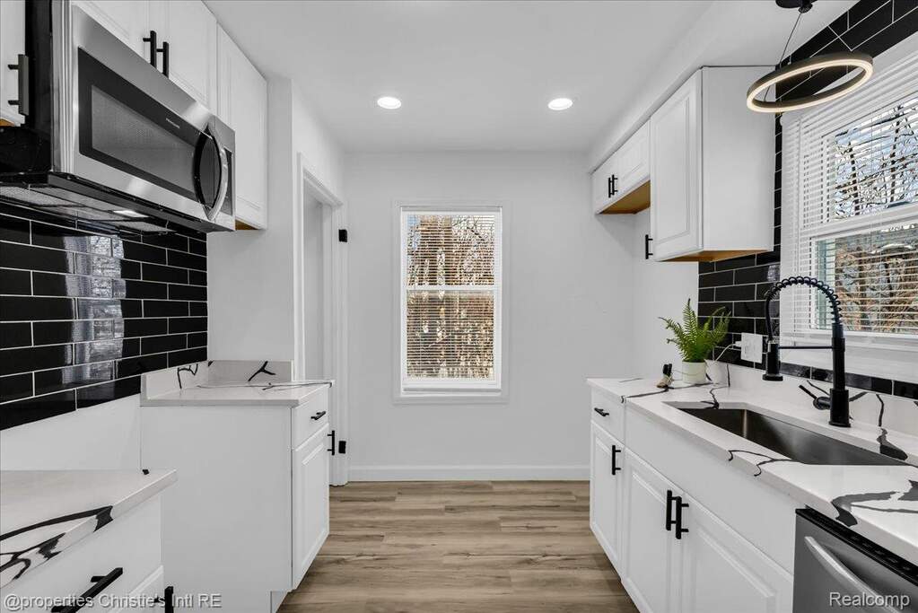 Experience refined living in this completely updated 3-bedroom, 1-bath bungalow, beautifully situated on Detroit's sought-after northwest side. Thoughtfully renovated from top to bottom, this residence showcases light-toned flooring throughout, curated custom lighting, and recessed illumination that enhances the home's warm, sophisticated ambiance. The sleek galley-style kitchen is both functional and stylish, offering generous prep space and abundant storage, perfect for hosting or everyday elegance. Indulge in the spa-inspired bathroom, featuring a rain shower head and contemporary finishes designed for relaxation. Two spacious bedrooms are located on the main level, while the expansive upstairs primary suite serves as a private retreat, ideal for rest and rejuvenation. The finished basement provides additional space for entertaining, lounging, or a home studio. Ideally located just minutes from Livernois and the Avenue of Fashion, Oak Park, and Southfield, with close proximity to shopping, dining, and places of worship. This home delivers elevated living with unmatched convenience!