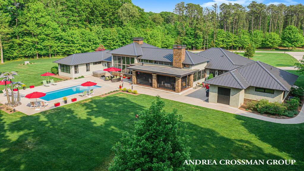 Welcome to the most stunning home around with over 23 acres & several hundred feet on the Pigeon River navigable to Lake Michigan. This nearly new home could not be re-created at this price. Features include an inground saltwater pool & hot tub, and a 4870 sq.ft. accessory building/toy barn with a bath. Enjoy 4 acres of manicured lawn and a 7425 sq.ft. home of the finest craftsmanship. With over 5000 sq.ft. on the main floor with a gorgeous master suite & 2 guest suites designed for privacy off a courtyard wing with fire table between, and the gourmet kitchen will delight any chef. The lower level features a game room, a theater/family room, a gorgeous sunken bar, a double station office, a gym, craft room, wine grotto, storage/mechanical rooms & half bath. Extras include 3 mechanical rooms, 3 HVAC systems, 2 backup generators, Zinc roof that should last 100 years, and Woodways Cabinetry. Home designed by Rob Sears and built by Troxel Custom Homes. The gourmet kitchen features a very large center island with walnut and granite top. It has 6 bar stools and is centrally located between the formal dining area, family room, and 3-season room with a grill overlooking the pool and hot tub. There's also a large butler pantry with a second SS Fisher & Paykel refrigerator/freezer to supplement the large SubZero in the main kitchen. The kitchen is equipped with 2 warming drawers, a steam oven, a microwave, pot holder racks, and a big nugget ice machine (with a smaller one by the lower level bar). Additionally, there is a double Wolf oven with 6 gas burners and a large griddle, 2 dishwasher drawers, and a full-sized Bosch dishwasher. The kitchen also includes a beverage refrigerator, wine fridge, Miele coffee station, prep sink, and Incinerator. Other features of the house include mini vacuums, a sound system throughout the house, and abundant electrical outlets. The sellers own a metal business, and they added a very impressive artistic metal wall by the roadside, near the gated entry, as well as sculptures near the 4,700+ sq ft accessory barn. They also installed wood-look metal panels inside the attached 3-stall garage, worth approximately $50-$60,000. The garage features epoxy floors, and many of the ceilings are custom imported metal. The third garage stall is equipped with hot and cold deionized water, a hydraulic lift, and central vacuum system, providing everything you need to keep your cars spotless. The outdoor courtyard features commercial-grade decorative lighting strung over the fire pit table. The exterior shingles are made of a long-lasting composite of top grade. The property also includes a security system with cameras installed throughout. There is a walnut commercial elevator connecting the indoor floors. The floors in certain areas, including the area near the hot tub, living room, kitchen, master bath and laundry are heated. For additional features, please refer to the attached feature list. One cannot replicate this home, riverfront acreage, barn, pool, and hot tub at a price anywhere near this today. The property is in immaculate condition and looks brand new.