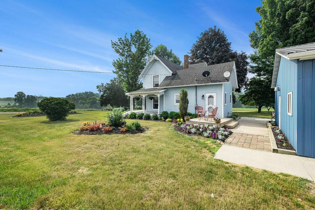 Take a look at this extremely well maintained farmhouse with a fully insulated and heated 32x40 pole barn on 1.5 acres. Main floor offers an open kitchen/dining area, as well a bedroom, full bathroom and main floor laundry. On the second floor you will find two additional bedrooms with a second full bathroom. Meticulously maintained hardwood floors and trim as well as fresh paint throughout the home. Recently updated to natural gas. Also recently updated are the fridge, oven, washer/dryer, and water heater. The barn is fully insulated and heated by the outdoor wood boiler, includes kitchenet and new concrete wrap around patio. Relax and enjoy the country views as you grab a handful of fresh strawberries from the raised garden beds. Schedule a showing today!