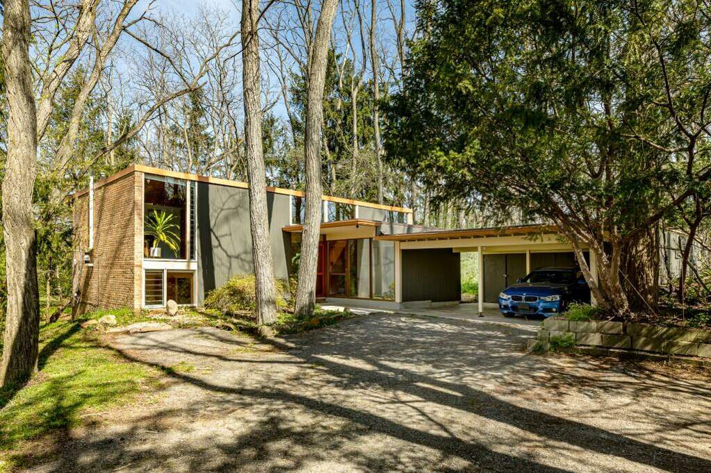HIGHEST AND BEST OFFERS DUE MONDAY, APRIL 22ND AT NOON. Stunning Mid-Century Modern home in the historic Thornoaks neighborhood! Designed by noted modernist architect James Livingston in 1958. Floor to ceiling windows offer treehouse views of the wooded lot. Open-concept living, kitchen, dining area features a wood ceiling and beams. Updates include: newer kitchen, new roof (2019), three updated bathrooms, furnace and A/C. Association fee is $100 per year, and includes access to a community owned parcel and boat launch on South Pond.