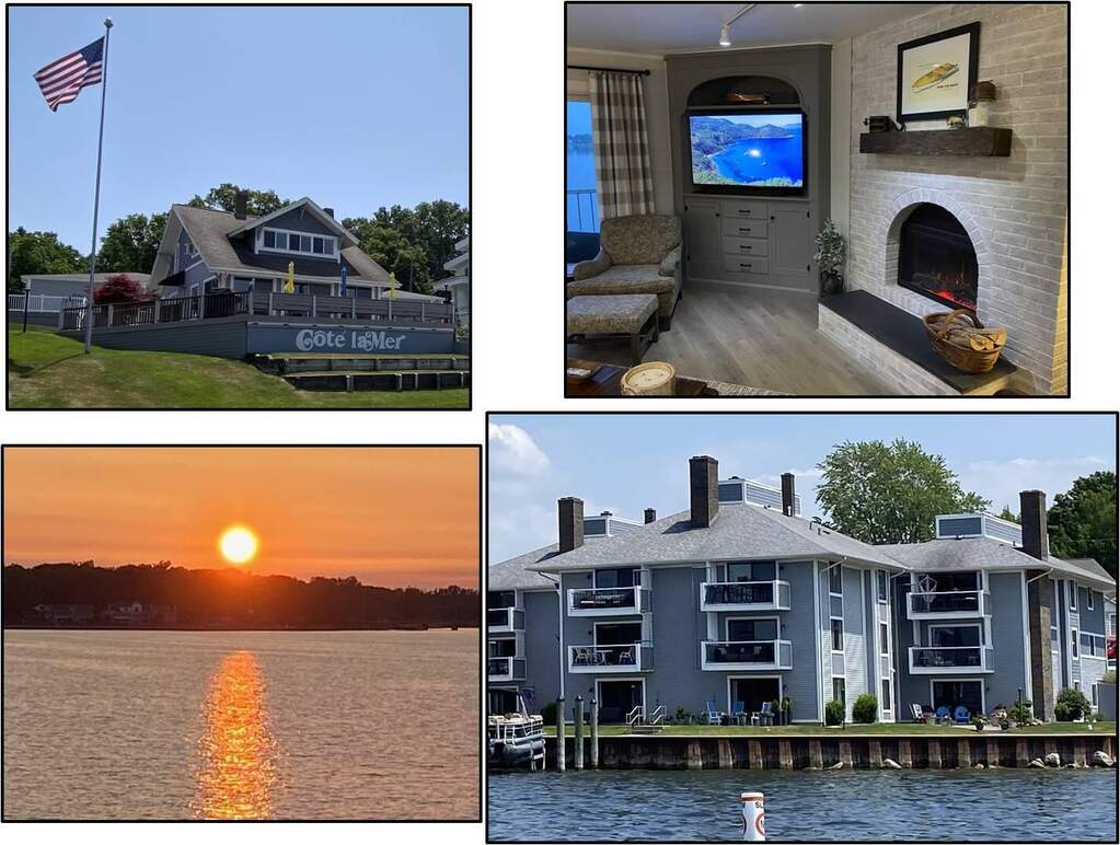 Fantastic Lakefront condo at an amazing price! Live the good life at this Cote La Mer condo with stunning panoramic views of Spring Lake, this luxurious main level condo with no steps is just a short distance to the association pool, clubhouse and private sandy beach making it a prime location within the association. Featuring 2 bedroom and 2 baths and a single stall detached garage, there is plenty of space for either year round living or a relaxing weekend getaway. Updates include: vinyl plank flooring, an electric fireplace insert which could be easily converted back to wood, quartz countertops and stainless steel appliances. From fine dining to quaint shops and walking and biking trails within a half mile, come experience what waterfront living is all abou