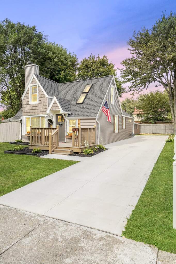 Welcome to this stunning Cape Cod concept situated on a MASSIVE LOT! Be taken back when entering your new home - featuring custom craftsmanship with SKYLIGHTS, premium wood trims, a new kitchen and living spaces with award winning color choices, stella quartz countertops in kitchen and bath, with recessed lighting throughout, plus more. The stylish exterior boasts custom barn features with wood accents and custom landscaping for a bonfire newer windows, newer siding, newer roof, plus more. The home is updated from top to bottom with a loft/bedroom upstairs and a beautiful bedroom downstairs. Beautiful custom stair railing as you ascend. This property is nestled on a quiet street and makes for a quiet living with primarily homeowners on the street. Home is certified for occupancy by Harper Woods. New concrete, driveway, and decorative landscaping. You can enjoy the backyard both morning and night, so bring your coffee and wine, and make this house your home - it won't last!
