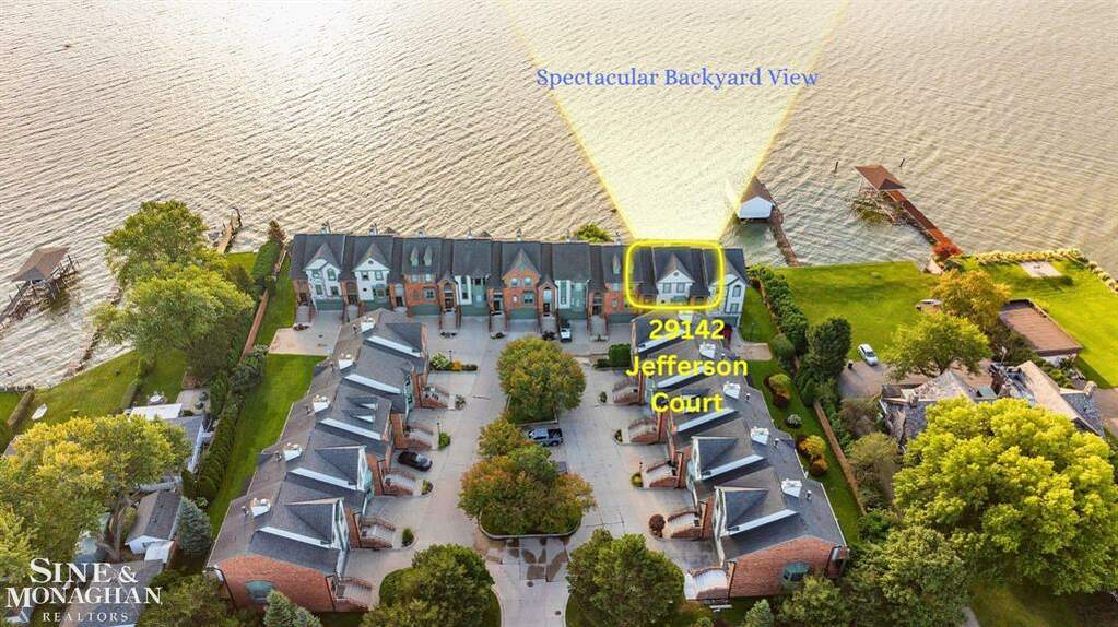 So close to the water you can literally spit into it from your balcony and hear the relaxing sounds of water. Indulge in luxurious waterfront living with this extraordinary condo on Lake St. Clair! With breathtaking panoramic views from every floor, you'll feel like you're on vacation every day. The first floor welcomes you with a gorgeous great room with hardwood flooring and dual sliding doors that let you see the view from anywhere in the room, and lead to a spacious balcony-perfect for enjoying some of the most stunning views imaginable with your morning coffee, relaxing dinner or nighttime cocktails. If you like to cook, the fully updated kitchen and elegant formal dining room provide an ideal space for both entertaining and everyday living. The Kitchen views are so wonderful, you'll never want to leave it. The primary suite is a serene retreat, featuring dual walk-in closets, a two-way fireplace, a cathedral ceiling, and a private balcony overlooking the lake. The primary suite bathroom is huge and offers the same wonderful views from the jacuzzi tub, it also shares the two-way fireplace with the bedroom suite. If you want to get away, fill the jacuzzi and add bubbles and a glass of wine and let the stress of the day melt away. An additional second-floor bedroom includes a full bath so whether you have a full house or occasional visitors, everyone has their own private quarters. The lower level walkout enhances convenience, it can be used as additional bedroom suite, an office or another entertaining area boasting a full bathroom and private brick paver patio just behind the sliding doors which offers the same incredible views at water level-perfect for relaxing outdoors. This condo also includes a two-car attached garage and access to a small dock on Lake St. Clair, making it easy to launch a paddleboard or jet ski for a day on the water. Opportunities like this are rare-don't miss out on owning this remarkable lakefront property!