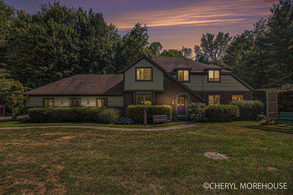 The setting for this English tudor, two story, home will amaze you! Private and wooded property with a wealth of wildlife to enjoy from your 4 season room or the large deck/patio. Sellers have owned this home for many years and have loved every minute of it. Well-constructed in 1979 offers the feeling of fine living with a formal dining room, library/den, great room, four season room, kitchen with breakfast nook, back entry laundry and a guest bath! The 2nd floor holds the primary suite as well as an additional three bedrooms and a 2nd full bath. This sale includes two separate parcels, already split, with one parcel consisting of 5.67 acres and the parcel with the home consisting of 3.06 acres.Per the township you are allowed to build one more home on this private road without the necessity of the road being upgraded (buyer to verify). Home offers an underground fence, gutters with leaf filter, woodshop in the basement level with stairway to the garage, generator hookup and an abundance of tranquility! (Per Seller, No association, neighborhood agreement that they each pay $250 a year for road maintenance)