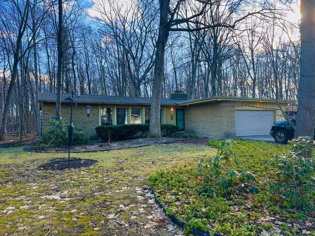 This 4 Bedroom, 3 Full Bath Mid-Century Modern Home offers Privacy and Convenience. Spacious layout features Kitchen w/ Quartz countertops, Snack bar and Updated Appliances, Separate Dining room, Family Room w/ Gas Fireplace, Main Floor Primary w/ Ensuite, and Main Floor Laundry. Updates Include: New Central Air 2023, Roof Replacement 2019, Furnace and Hot Water Heater 2020. The Partial Basement has an Egress Window with the opportunity for additional living space. A private backyard w/ Pressed Concrete Patio installed 2021. This property is surrounded by nature with close proximity to a playground and schools. 2 Stall Attached Garage.