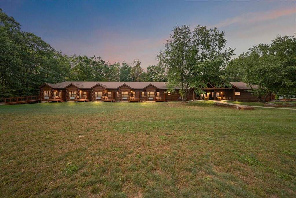 Welcome to Rockwell Lake Lodge, a rare opportunity to own nearly 670 acres of pristine Northern Michigan wilderness with a private 40-acre lake at its heart. This secluded retreat combines unmatched natural beauty with extensive improvements, offering endless recreational and lifestyle possibilities. The land is a diverse mix of rolling hills, mature hardwoods, planted pines, wetlands, and elevated ridges overlooking Rockwell Lake, home to largemouth bass, bluegill, and walleye. Abundant wildlife thrives across the property, including whitetail deer, turkey, black bear, and grouse, making it a true sportsmanAca'a"cs paradise. The centerpiece is the 11,800+ sq. ft. Rockwell Lodge, built in 2007, featuring 10 private hotel-style rooms with en-suite baths, fireplaces, and balconies, along with a grand lobby, conference and dining areas, and a full commercial kitchen. Additional lodging includes four two-story cabins (2007Aca'"08) with bunk space, classrooms, and apartments, plus a renovated 4-bedroom, 2-bath residence that was recently updated in 2021. A 2,400 sq. ft. heated maintenance building with carport and supporting outbuildings provide ample storage and operational support. Property infrastructure is extensive: propane heat, multiple generators (up to 150 kW for full lodge backup), fiber internet, security system with cameras, and private well and septic systems. Event capacity includes well over 100 guests indoors or outdoors, with a lakeside patio, firepit, trails, docks, and parking for 25+ vehicles. The property is perimeter fenced and includes forestry resources, and over 10 miles of mapped trails. With nearly every summer weekend booked for weddings and retreats, Rockwell Lodge is proven for hospitality yet versatile enough for use as a private estate, corporate retreat, hunting and fishing lodge, or long-term conservation investment.