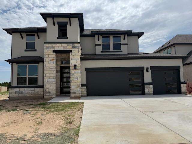 This beautifully crafted 2-story home combines elegant design with everyday functionality. Featuring a striking stucco and stone exterior and a spacious 3-car garage, this home offers 5 bedrooms, 4 full baths, and exceptional living spaces. Step inside to warm wood floors, soaring ceilings, and abundant natural light that creates an inviting and open atmosphere. The gourmet kitchen is a chef's dream, boasting crisp white cabinetry, modern hardware, sleek quartz countertops, and built-in appliances-perfect for entertaining or everyday living. The main level includes a private guest room and a primary suite with a charming bay window overlooking the backyard. The spa-inspired primary bath features dual vanities, a fully tile walk-in shower, and a separate soaking tub for ultimate relaxation. Upstairs, you'll find three spacious bedrooms-including one with an en-suite bath-and a large gameroom that overlooks the family room below. Enjoy beautiful views of the nearby city park and serene Devine Lake, making this home the perfect blend of comfort, style, and location. Additional highlights include 8-foot six-panel doors throughout the main floor, and a tax rate of just 2.02%. Residents benefit from a low HOA fee of $40/month, granting access to a community park and nearby Devine Lake. Families will appreciate the zoning to esteemed Leander ISD schools: Bagdad Elementary, Leander Middle, and Glenn High School. Strategically located, this home offers convenient commutes to major employers: approximately 25 minutes to IBM at The Domain, 30 minutes to the Apple Campus, 35 minutes to Downtown Austin, and 40 minutes to the Samsung Plant in Taylor.
