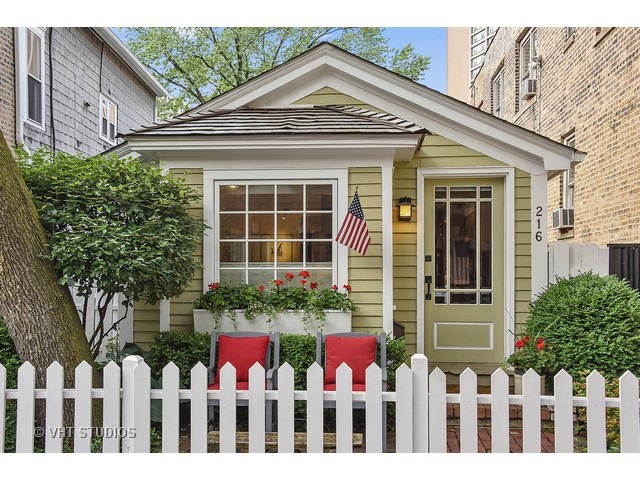 Iconic home in the heart of Old Town Triangle. White picket fence & beautifully landscaped yard on outside. Inside: hardwood floors,skylights,fireplace,craftsman style cabinets in open kitchen,beautiful bath,walk-in closet/laundry rm. Big bedrm opens to garden. This landmarked home offers the rare opportunity of simple living in a truly perfect Chicago location. Walk everywhere from beautiful & historic tree lined and quiet street. Coveted 1/c garage as well. Fantastic opportunity to live in the heart of Old Town while owning a piece of Chicago history.