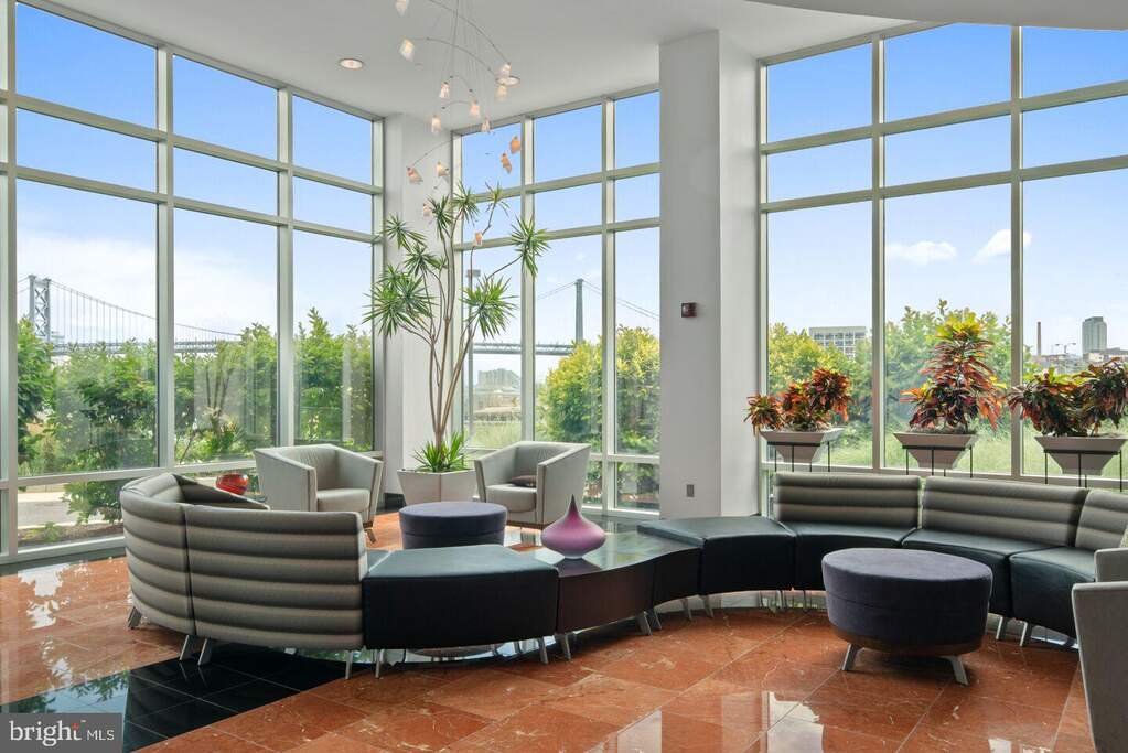 *UNIT SPECIFIC PHOTOS COMING SOON* P1002 is the desirable Southeast CORNER 2-bedroom unit with an open concept den, 2.5 bathrooms, and balcony. What makes this unit so special is that out of all 3 buildings here, only the Peninsula tower yields a Southeastern exposure that doesn't have one of the other towers impeding on the view. This is because the Peninsula was built on the most Southeastern land within all of Waterfront Square! The unit showcases panoramic, unobstructed views of the Delaware River, Benjamin Franklin Bridge, and Center City Skyline through oversized floor-to-ceiling windows. Upon entering the unit, a double closet is positioned on the periphery wall that serves as both a coat closet, and storage unit. The closet door closest to the entryway is best for coats, shoes etc, and the closet to the left is a deep storage unit; ideal as an oversized pantry. Adjacent to the foyer, is the exquisite kitchen with large kitchen island for added functionality. The fit and finish of the kitchen is a combination of Stainless-Steel appliances, and dark Granite countertops - creating a visually stunning contrast. A powder room with hidden laundry closet is conveniently located off the kitchen, ensuring it is easily accessible for guests, yet discreetly placed. The living room, dining room and open den area are really the heart of P1002, as the views are unparalleled elsewhere. Expansive floor-to-ceiling windows frame these picturesque scenes, bringing the vibrant cityscape and serene water vistas into your living space; feel as though you're right on the water! P1002 gets both morning sun from the East, sun-drenched afternoons and evenings from the South, and one can even see the sun set just beyond the Center City skyline at dusk; nothing is to be missed! Tasteful wide-plank luxury vinyl flooring runs throughout these areas. The primary bedroom has a large walk-in closet, Ben Franklin Bridge views, and a Spa-like en-suite bathroom. The secondary bedroom features a double reach-in closet, Center City Skyline views, and a full marble 3-piece bathroom. P1102 is well laid out, as both bedrooms are separated by the living spaces. One parking license is included! Waterfront Square Condominium & Spa is a premier gated community offering 24/7 guard and gate, as well as concierge, valet parking, pool and hot tub with river deck, fitness center, sauna and steam room, massage rooms and community rooms. There is a 3- level garage, with Philadelphia's largest green roof situated on top. Waterfront Square resides on a 9.5-acre riverfront enclave, with lush manicured outdoor common parks and gardens right on the river's edge. Management is on site, and Waterfront boasts an advanced security system with closed-circuit television. For your convenience, Global Limousine runs on site from M-F, taking residents as far as 30th street and back home to their gated community. The river deck is oversized, encompassing a 25-meter heated lap pool (junior Olympic). Waterfront Square has an excellent location, due to its proximity to area highways & airports (676,95, all bridges), yet is nestled away on the Delaware River - the best of both worlds! If its unequivocal luxury, showcasing the best views in Philadelphia, adorned with amenities, then it must be Waterfront Square Condominium & Spa!