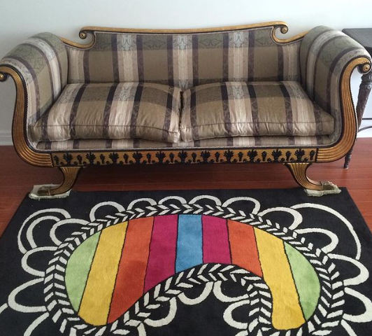 Sure, not all furnishings need to match perfectly, but most people aim for complementary colors or patterns. These two don't belong in the same era, let alone the same room!
